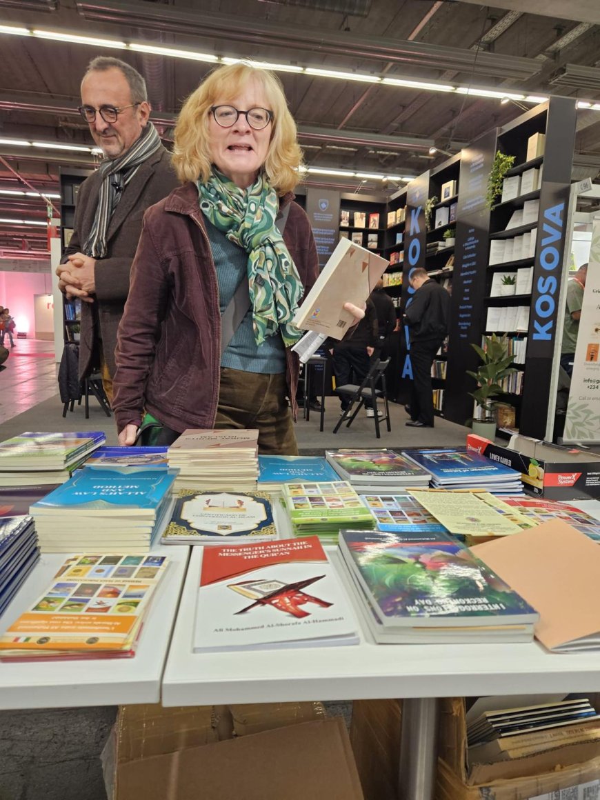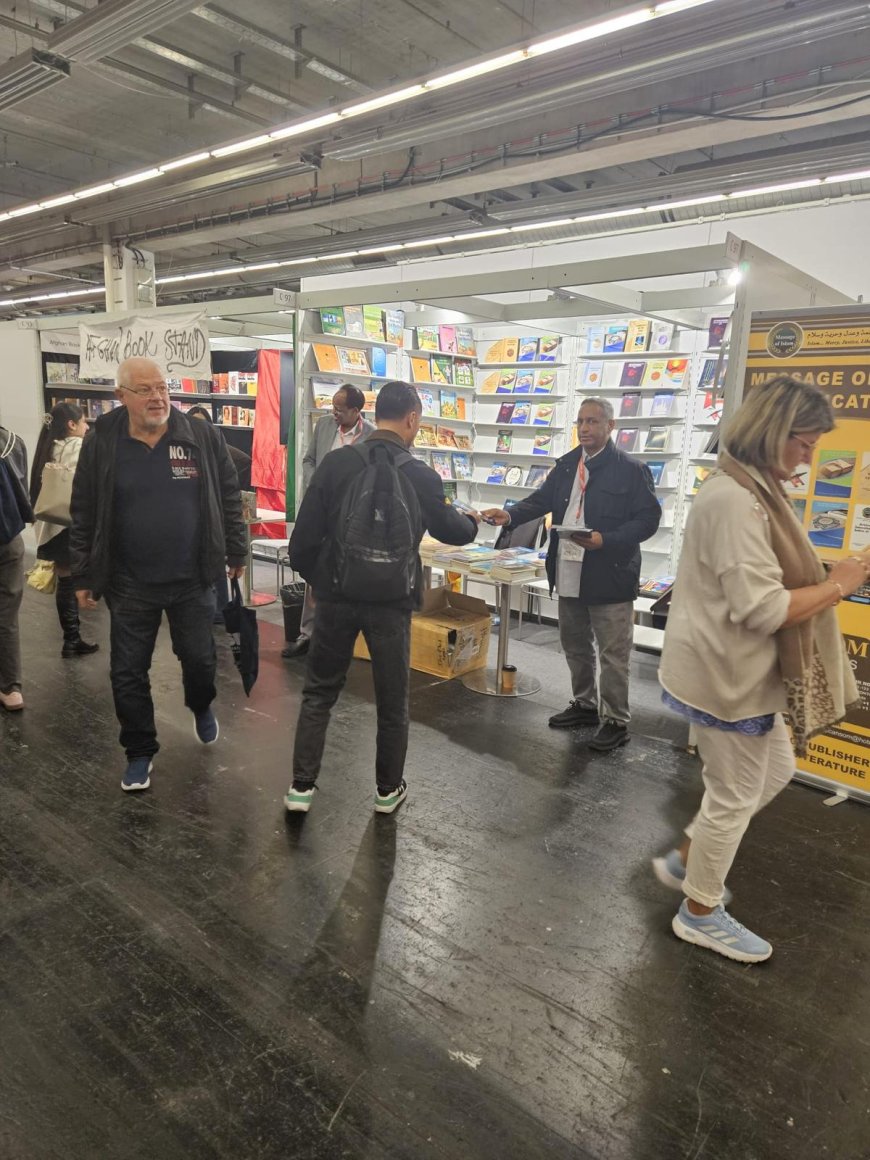 El estand de la Fundación Mensaje de Paz está recibiendo una afluencia constante de visitantes y amantes de la cultura y el pensamiento, atraídos por las obras que promueven la corrección de los conceptos erróneos sobre la religión, así como los valores de la tolerancia, la paz y la moderación, y la vuelta al mensaje puro del Corán.
