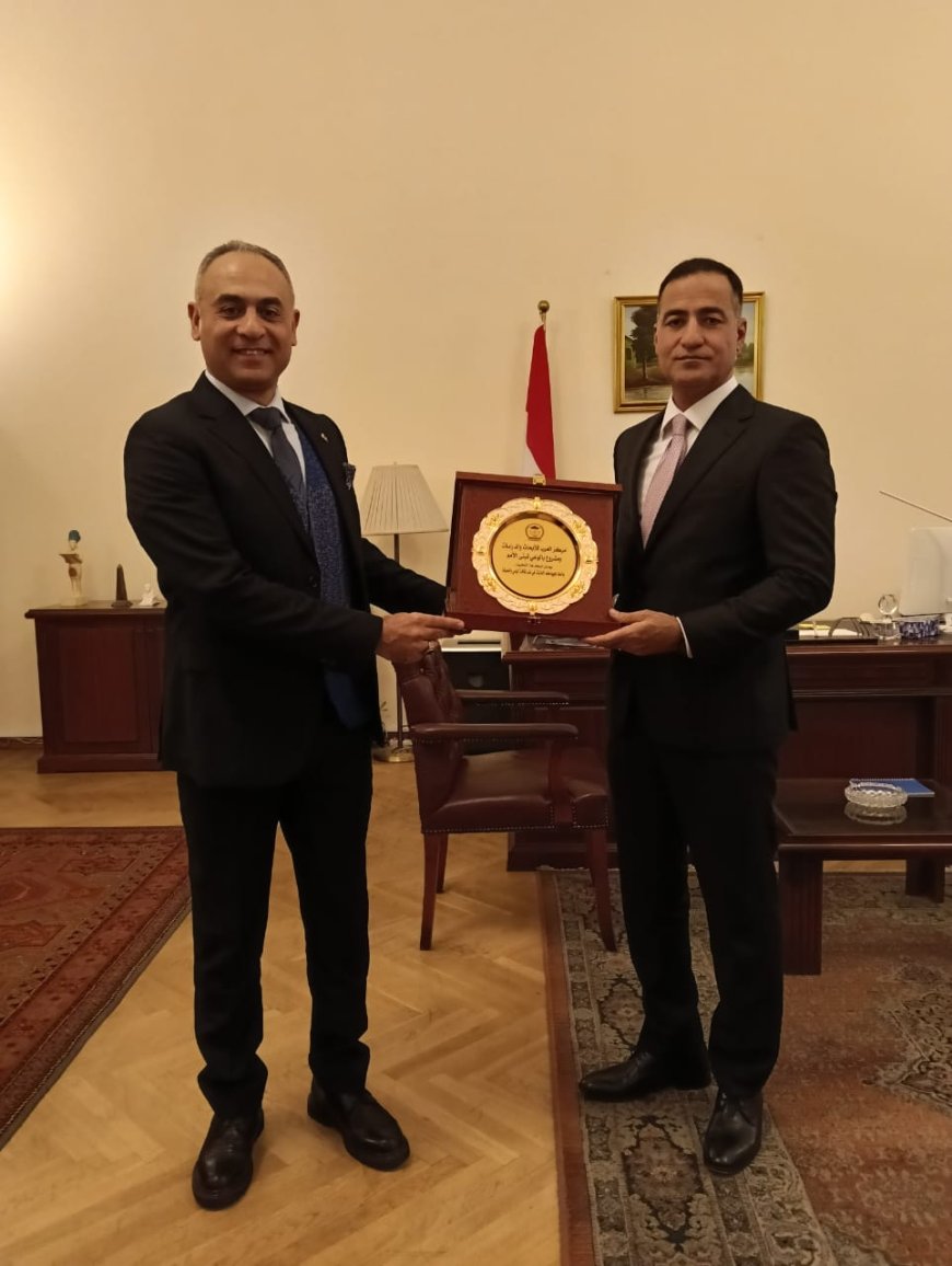 El embajador egipcio dio la bienvenida a la delegación de la Fundación, elogiando los esfuerzos que realiza en la promoción y consolidación de la cultura de convivencia entre los pueblos, además de abordar diversos temas de cooperación y explorar vías para fortalecerla.