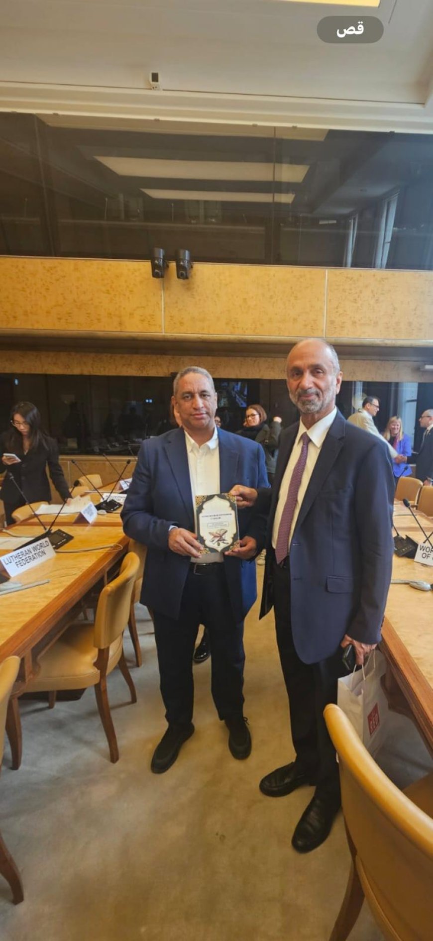 Recibieron ejemplares del libro la doctora Aisha Al Sharif, representante de la Organización de Cooperación Islámica; el embajador David Francis, director de la Universidad para la Paz de las Naciones Unidas en Ginebra; el embajador Al Jarallah, representante de los Emiratos Árabes Unidos; y la señora Safiq Bavia, responsable de refugiados en las Naciones Unidas. Todos expresaron su aprecio por el profundo contenido humanista y espiritual de la obra y destacaron su papel en la promoción del diálogo, la convivencia y la paz.