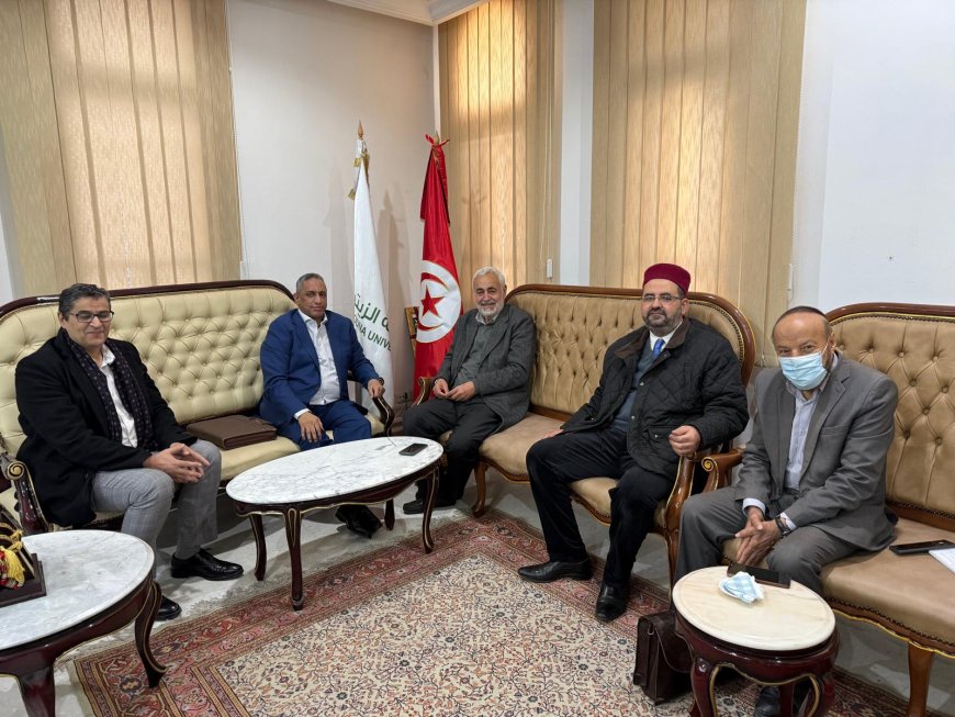 El profesor doctor Abdel Latif Bouazizi, rector de la Universidad Zitouna, recibió a la delegación de la Fundación Mensaje de Paz, encabezada por el señor Al-Hajj Mohamed Al-Amin, responsable de la Fundación en España, en un encuentro oficial que reflejó la profundidad de las relaciones académicas y la apertura cultural entre ambas partes.